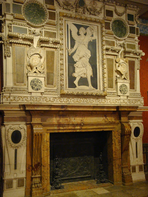 Les cheminées peintes racontent l'histoire biblique des deux frères Jacob et Esaü, pour glorifier Anne de Montmorency, qui tout omme Jacob, bien que cadet, hérita des titres et des biens familiaux. Des peintures décoratives, dont les ornements portent le nom de grotesques, apparaissent dans les embrasures de fenêtre et sur les corniches. L'ameublement n'est pas d'origine mais se veut à la hauteur de la somptuosité de la pièce. A admirer notamment le grand cabinet italien en forme d'arc de triomphe orné des armes du Cardinal Alexandre Farnèse (vers1580) et l'armoire peinte de scènes bibliques en camaïeu d'or, sortie des ateliers du célèbre artiste dijonnais Hugues Sambin.